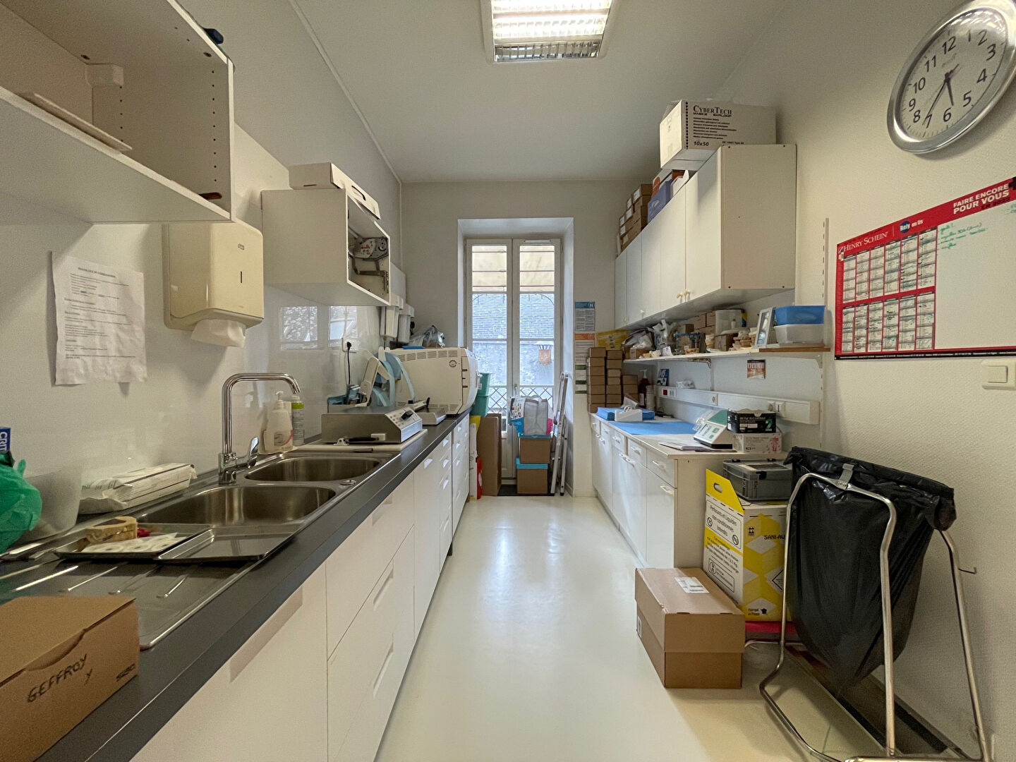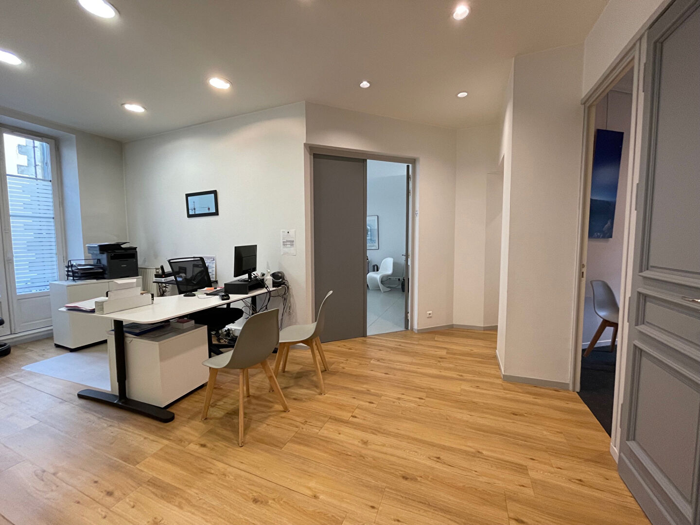 QUIMPER CENTRE-VILLE rue St-François à proximité immédiate du parking de la résistance et des halles, un ensemble de bureaux situé au 1er étage et composé de : Entrée / Secrétariat, 4 bureaux, salle de pause, sanitaires et terrasse de 7 m². Très bon état général.