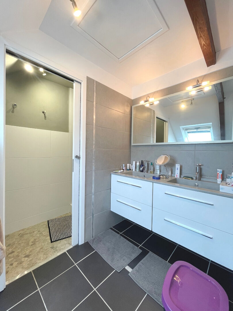 Superbe longère construite sur un terrain de 3800 m², au calme et à quelques minutes du centre-ville de Quimper. D’une surface de 166 m² habitables, elle bénéficie d’une superbe pièce à vivre d’environ 80 m², avec cheminée et accès terrasse et jardin, cuisine aménagée, grande buanderie, 4 chambres, 3 salle de bains… Equipée récemment d’une pompe à chaleur (chauffage au sol) et bien isolée elle offre le confort moderne. En plus un penty entièrement rénové pour accueillir famille et amis ou location saisonnière.