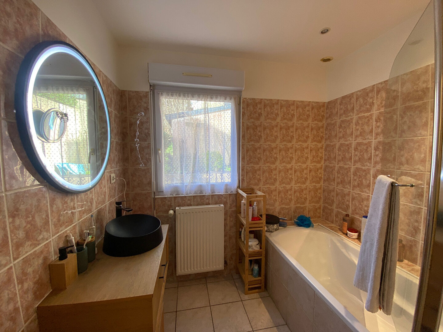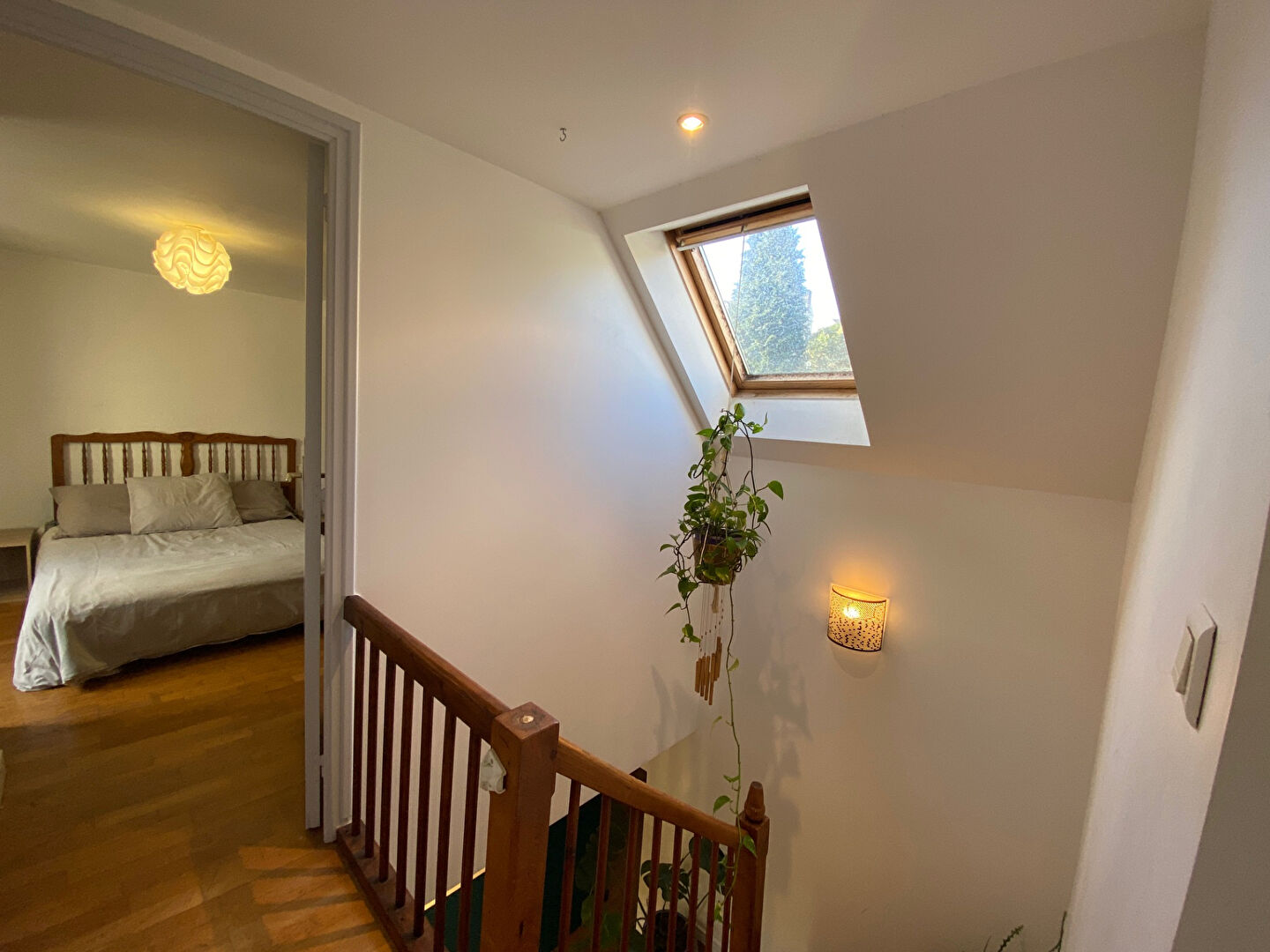 VIE DE PLAIN-PIED et idéalement située au coeur d’un quartier prisé et proche des écoles, cette agréable maison familiale très bien entretenue, mitoyenne d’un côté, offre des volumes fonctionnels et une distribution idéale pour une vie de famille confortable. Au rez-de-chaussée, vous serez tout de suite séduit par une belle entrée avec placard, menant à une pièce de vie lumineuse exposée Sud-Ouest composée d’un salon convivial et d’une salle à manger attenante à une cuisine semi-ouverte. Ce niveau dispose également d’une chambre, d’une salle de bains, d’une buanderie et de WC indépendants. A l’étage, l’espace nuit se compose de deux chambres, d’une salle d’eau et de WC séparés. Les extérieurs proposent une agréable terrasse, un jardin, un cabanon de rangement et un emplacement de stationnement privatif . Toiture refaite entièrement (ardoise et zinc). (5.00 % honoraires TTC à la charge de l’acquéreur.)